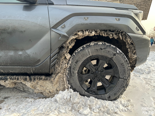 或许原因就出在轮眉下方的冰坨上,车辆底盘上也难免会有一些雪泥。