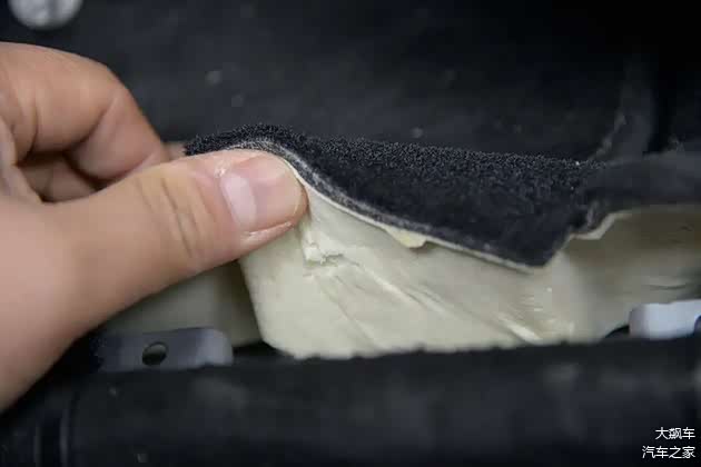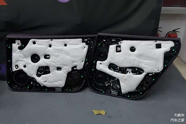 车门内饰板上贴有大面积的白色原生隔音棉。
