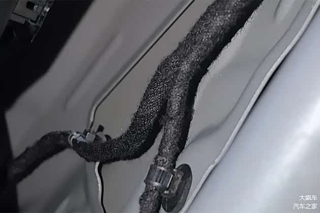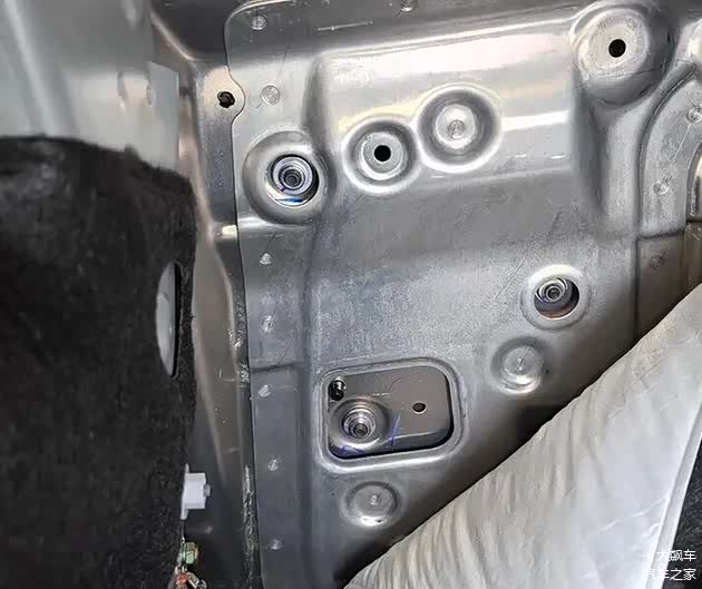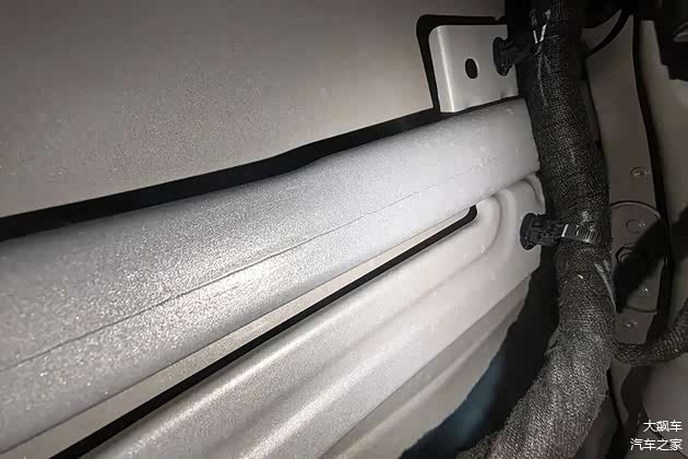 拆开车门内饰板,能看到车门采用高端车常用的硬塑料板密封。