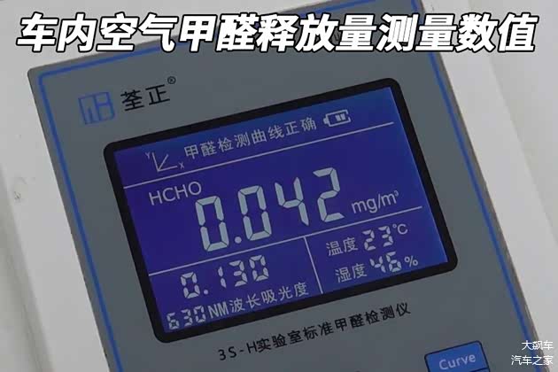 经过在23±1℃恒温环境中16小时的封闭,这辆车的车内空气甲醛释放量测量数值为0.042毫克每立方米。