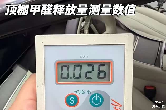 座椅的甲醛释放量测量数值为0.018毫克每立方米,顶棚中的甲醛释放量测量数值为0.026毫克每立方米。