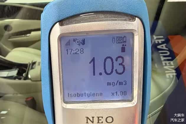 经过在23±1℃恒温环境中16小时的封闭,这辆车的车内空气TVOC释放量测量数值为1.03毫克每立方米。