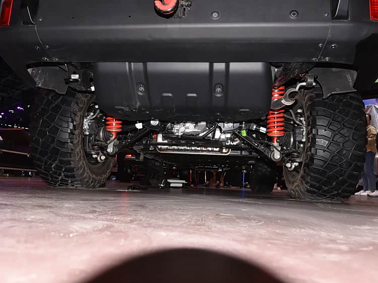 在车身结构上,新车继续采用非承载式车身,这是BJ40系列一直坚持的技术路线。相比承载式结构,非承载式在抗扭刚性、悬架行程释放以及复杂路况下的耐久表现上更具优势,也为后续改装提供了结构基础。这一点决定了BJ40增程赤兔并非简单的“城市SUV加越野外观”,而是在底层结构层面保留了传统越野车的核心特征。