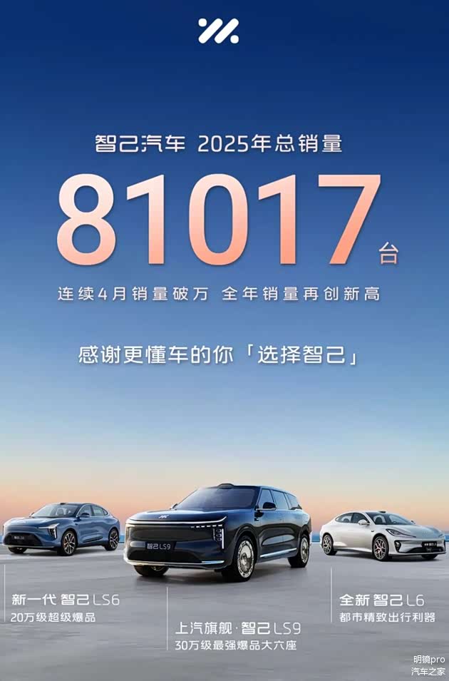 智己用LS6和LS9两款产品,证明了其“以技术创新解决用户核心痛点”路径的正确性。展望2026年,伴随政策补贴的退出,行业的淘汰赛将进一步升级。为应对更严峻的挑战,智己已明确将继续以“品牌向上”与“技术突围”为双核驱动,发起更迅猛的攻势。在产品和品牌层面,智己将推出全新车型LS8,这款车将延续“大电池增程”和LS9的旗舰设计语言,填补智己产品空白,助力智己冲击月销更高目标。