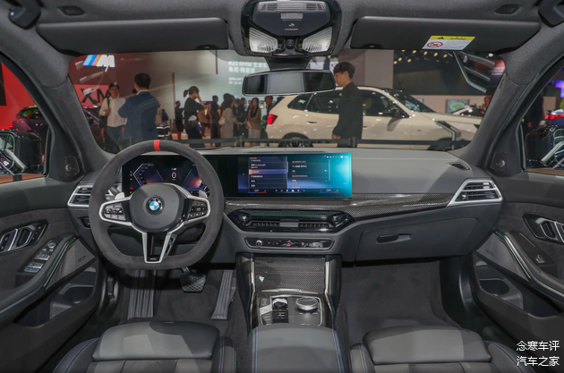 内饰部分,330Li高配车型给了碳纤维饰条和水晶组件。好看吗?好看。