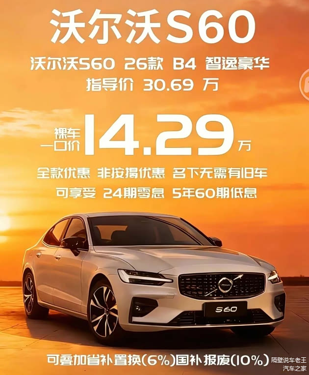 各位老铁,最近我一位在大学当老师的朋友,遇到了个典型的“中年选择题”。开了七八年的合资家轿,想换台车,提升点生活品质。他骨子里是个保守派,看重安全、环保和质感,对BBA的张扬不太感冒,一直觉得沃尔沃S60这种低调有内涵的车型是他的“菜”。可过去一看价格,中配落地怎么也得三十万往上,摸摸钱包,只能叹口气。