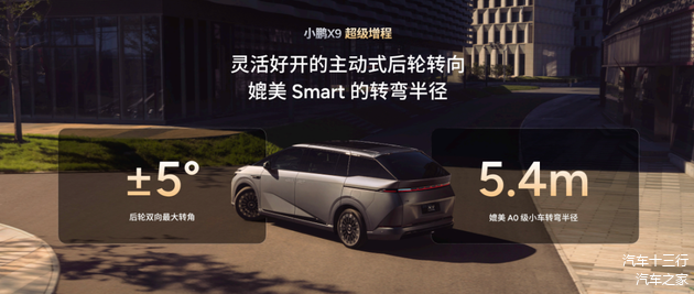 随着家庭消费需求多元化增长,多孩家庭、多代家庭成为MPV市场主力,用户对MPV的需求已从单一功能交通工具属性,向全场景兼容的生活空间转变。作为全球唯一标配后轮转向的家用大七座,小鹏X9其后轮双向±5°最大转角,让5.3米车长实现5.4米的同级最小转弯半径,媲美A0级小车灵活性,女性用户与新手也能轻松驾驭。