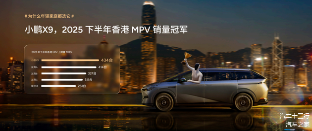 小鹏X9不止在国内表现突出,在全球市场布局上,小鹏X9的表现同样可圈可点。2025年下半年,该车成为香港MPV销量冠军,同时也是第4季度香港MPV销量第一。作为粤港澳大湾区的中心城市之一,香港城市密度高,家庭用户倾向多功能车型,因此这里天然成为最成熟的MPV市场。小鹏X9能够双连冠,充分证明其过硬的产品力。
