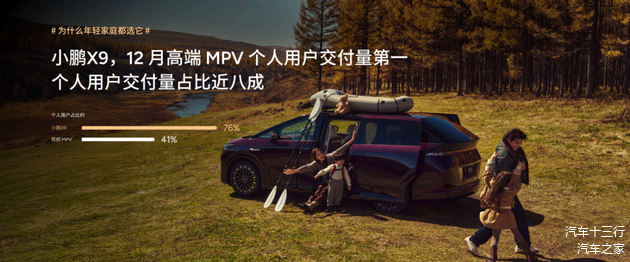 小鹏X9实现的不仅是单纯销量反弹,更是一场结构性胜利。其高端MPV个人用户交付占比高达76%,远超行业平均水平的41%,领先同级竞品35个百分点。更是在2025年12月份,拿下高端MPV个人用户交付量第一。这些数据充分说明,小鹏X9已彻底剥离MPV的“工具属性”,成功转向家庭用户核心需求。