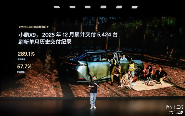在MPV市场整体增长放缓,传统商务车型份额萎靡的大环境下,小鹏X9却实现逆势突围。数据显示,2025年12月,小鹏X9创下单月5424台的交付纪录,同比激增289.1%,环比增长67.7%。