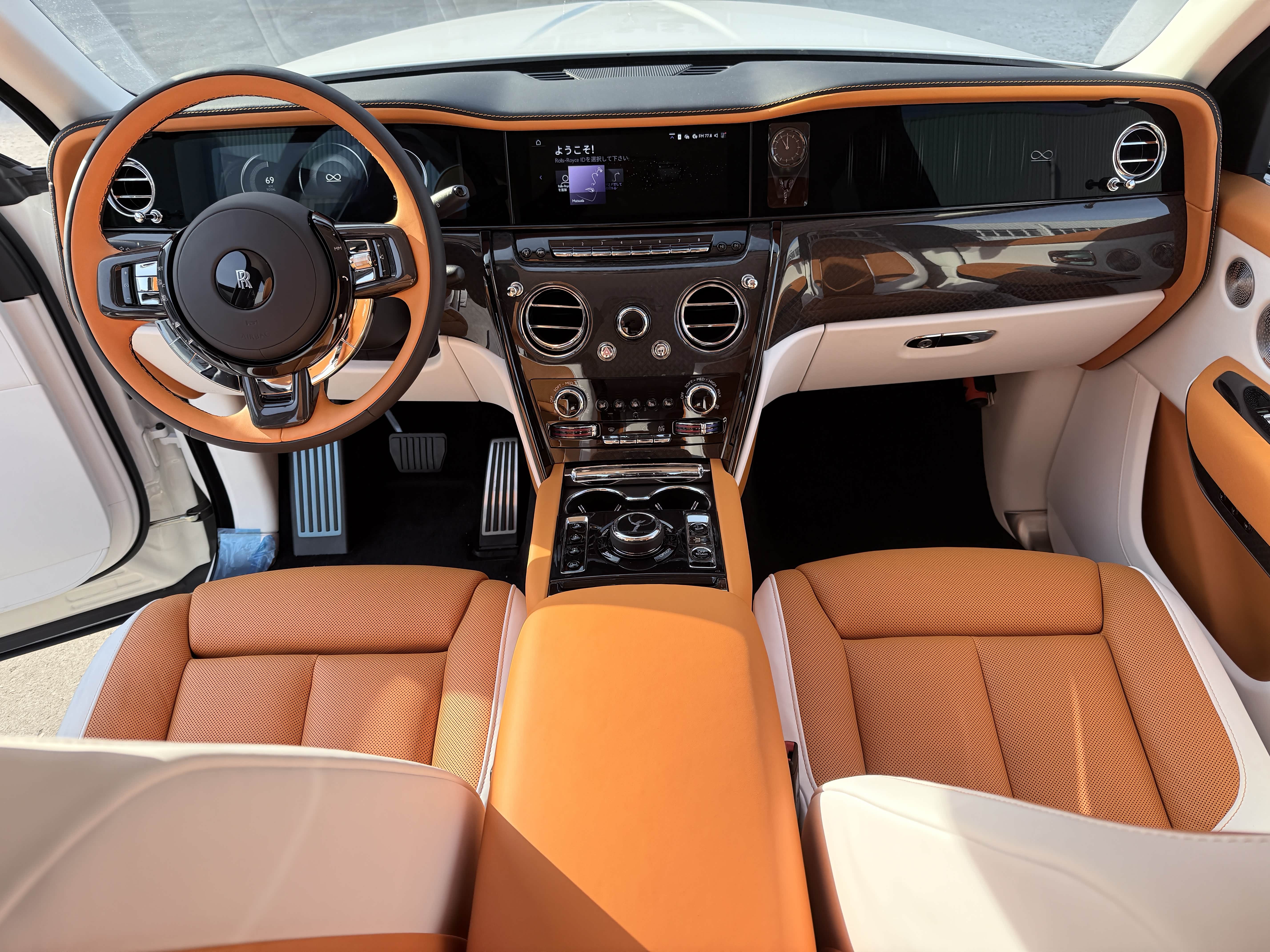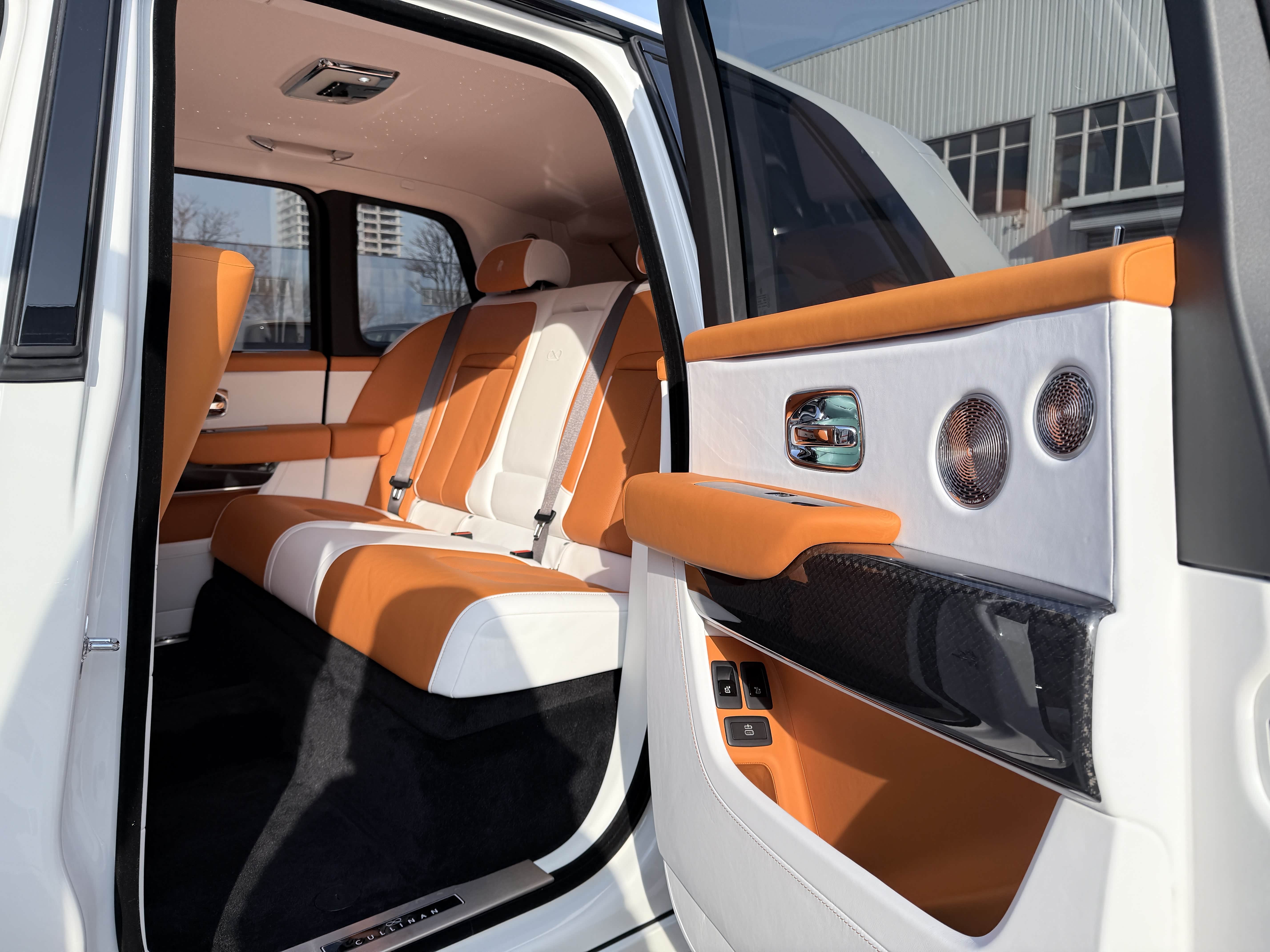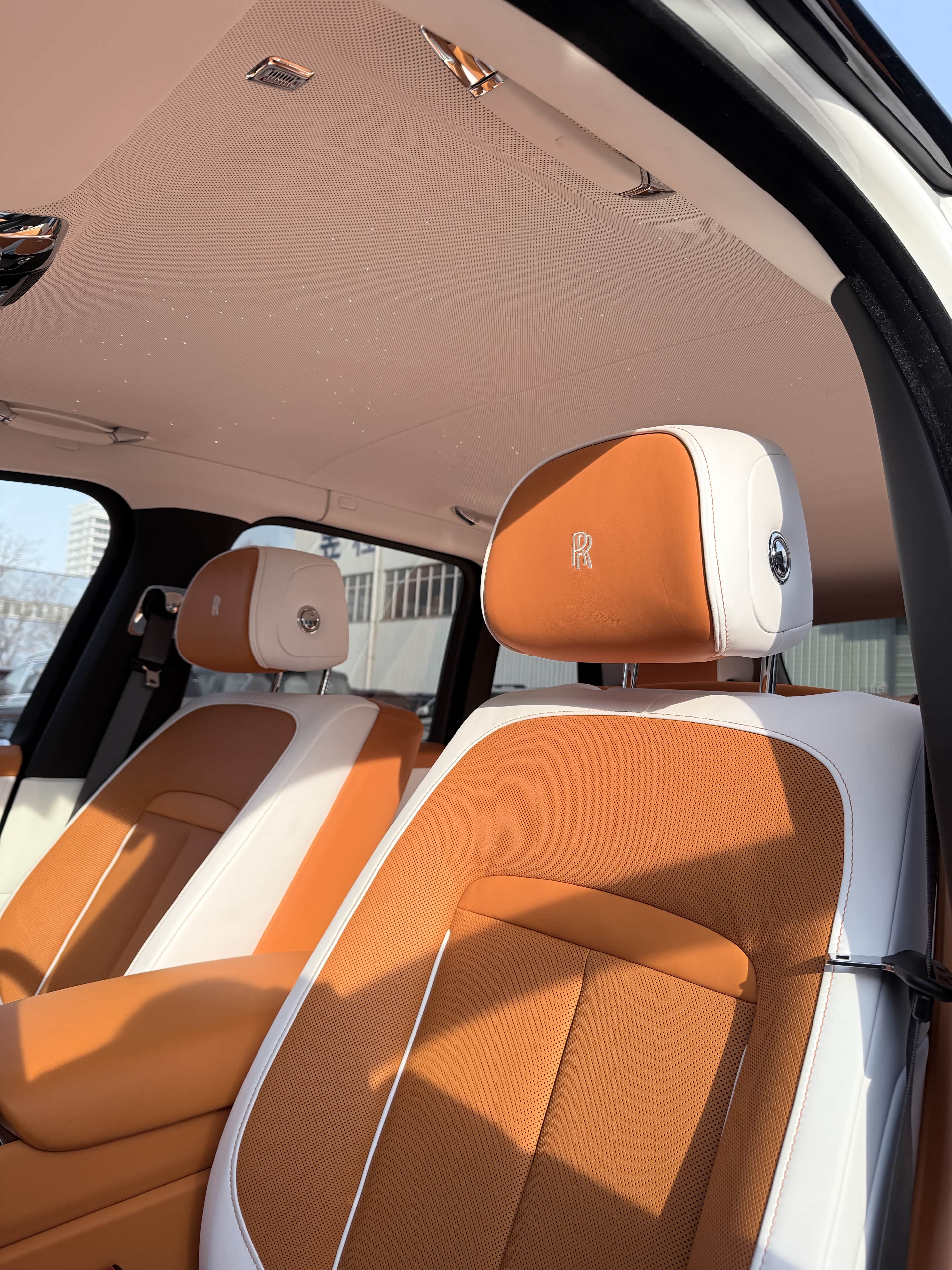 25款库里南BB版 白/爱马仕橙+优雅白,增值,五座,副驾驶发光面板,双腰线,星空顶,定制音响,双拼方向盘,碳纤维中控板,23寸轮毂
