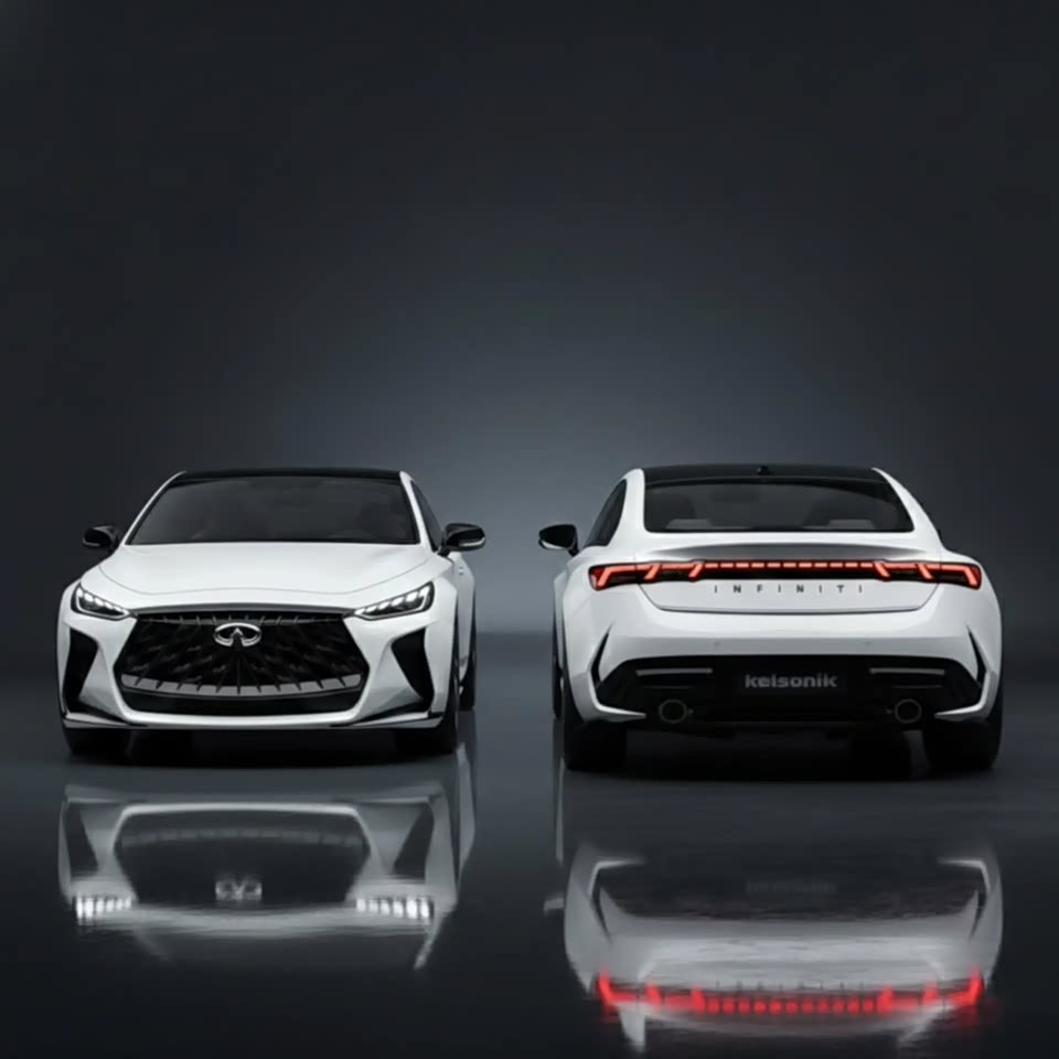 全新英菲尼迪Q60假想图,新车将会是一款非常优雅的跑车,车内提供双排座椅的设计,动力上有望搭载传统的燃油版本,前脸采用了优雅的风格,中网格栅采用了交错式的纹理,并且运用了大尺寸的设计,有着较高的颜值设计,头灯组运用了细长的造型,亮起来比较漂亮。侧面采用了优雅的车身设计,侧窗线的造型比较动感,采用了上下腰线,轮毂的风格比较运动。尾部采用了两种假想风格,一种是提供平直的贯通式尾灯组,另一种风格是采用了圆形的尾灯组设计,感觉两种风格的造型都是比较漂亮,后包围采用了硬朗的风格,提供双出的排气管设计。
