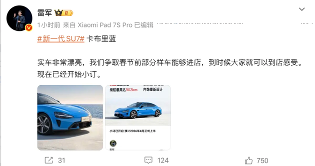 相比单项参数,这类耐力测试更考验系统协同能力。电机持续输出、电池温控、补能节奏以及整车电子系统的稳定运行,都会直接影响最终结果。从测试数据来看,新款SU7 Max在长时间高强度运行下保持了较为稳定的性能输出,这也是其技术定位的重要体现。按照规划,新款小米SU7将于2026年4月正式上市,春节前样车进店意味着用户有更充足的时间完成对比与体验。从导购角度看,这种节奏有利于用户在现款车型与新款车型之间做出理性选择,也为潜在价格调整留下空间。