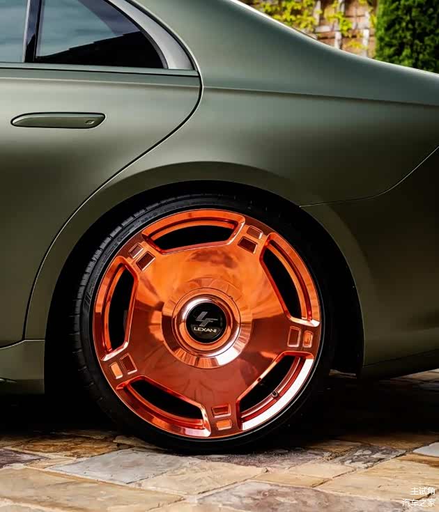 Lexani改装的这台奔驰S 580还有什么过人之处?官方表示他们的轮毂是整车的亮点,这款M-132 XL型号的轮毂采用“大饼”造型,经过镜面工艺,使用古铜色漆面,中央有悬浮车标盖可保持Lexani的车标保持正向,尺寸为22英寸,整体风格不知大家是否喜欢?