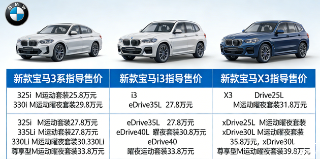总结下来,三款车的核心推荐逻辑很清晰:预算25-30万,追求燃油驾趣选325Li M运动套装,家用空间和配置兼顾;想尝鲜豪华纯电,入门版i3就能满足日常通勤,配置无短板;预算30-40万,家用SUV选X3入门或中配,空间、安全、颜值一站式到位。这次宝马的“增配降价”,让豪华车的性价比大幅提升,对比同价位合资品牌,它的品牌力和配置更有优势;对比其他豪华品牌,价格门槛更低。不管你的需求是家用、通勤还是追求个性,这三款车都能给出满意答案,闭眼入基本不踩坑。