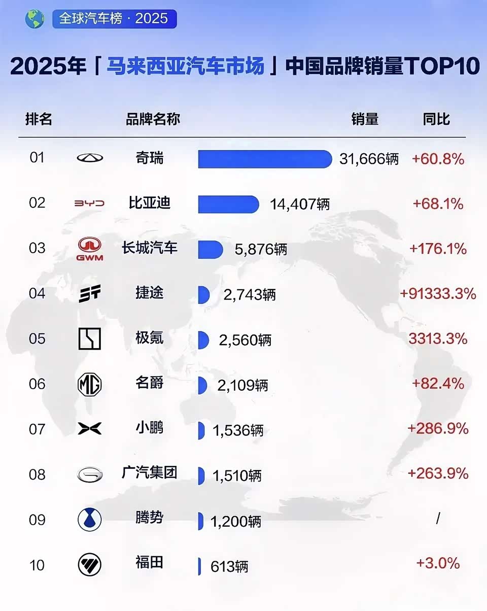 不得不说的是,捷途同比增幅高达91333.3%,作为奇瑞旗下子品牌,捷途在马来西亚市场的高增长,也说明了该品牌兼具越野与舒适属性SUV的市场定位符合当地市场需求。