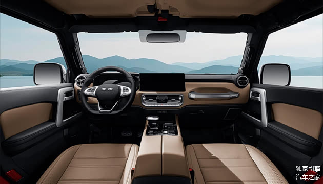 内饰和配置是两款车的“性格分水岭”,北京越野BJ40探险家主打“实用主义”,车内布局规整,15.6英寸英寸悬浮式大屏,内置8155芯片操作流畅不卡顿,能轻松应对各种复杂指令,大量实体按键的保留让驾驶者在越野过程中能更便捷地进行操作;前排座椅加热/通风都配齐了,为驾乘人员提供舒适的乘坐体验。