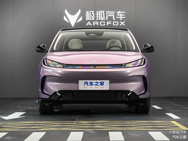 我们首先来看新车的外观设计方面,极狐T1的前脸设计堪称"反差萌"的典范。俯冲式的封闭式前脸像蓄势待发的小兽,贯穿车头的"灵动冰璨"大灯内部藏着点阵式LED,点亮时如同流动的冰晶,科技感十足。最妙的是突出的"车鼻"设计,搭配下方"C"形导风槽里的獠牙式熏黑饰条,硬生生营造出"奶凶奶凶"的既视感。这种设计既保留了纯电车的未来感,又通过细节处理避免了冰冷感,让这台小车从正面看就带着"不好惹"的气场。