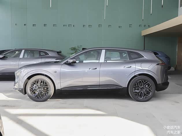 再来看车身侧面部分,车身侧面凭借精准比例设计,实现颜值与空间的平衡。1980mm的车宽搭配2940mm长轴距,营造出宽体低趴的运动姿态。车门采用隐藏式门把手设计,搭配从车头延伸至车尾的贯穿式腰线,让车身线条更显流畅舒展,有效降低风阻系数。全系标配19英寸铝合金轮毂,高配车型升级20英寸运动轮毂,造型锋利且抓地力出色,搭配245/45 R19宽胎,进一步强化运动质感。180mm的离地间隙适配城市颠簸路段与轻度非铺装路面,兼顾通过性与驾驶稳定性,满足多场景出行需求。