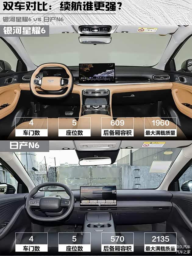 银河星耀6后备箱609L完胜N6的570L,后排膝部两拳余量,门板能塞1.5L水壶。N6后排更宽敞(695mm膝部空间),但后备箱不能放倒!银河前排放倒直接变身小货车,拉大件更灵活🛋️