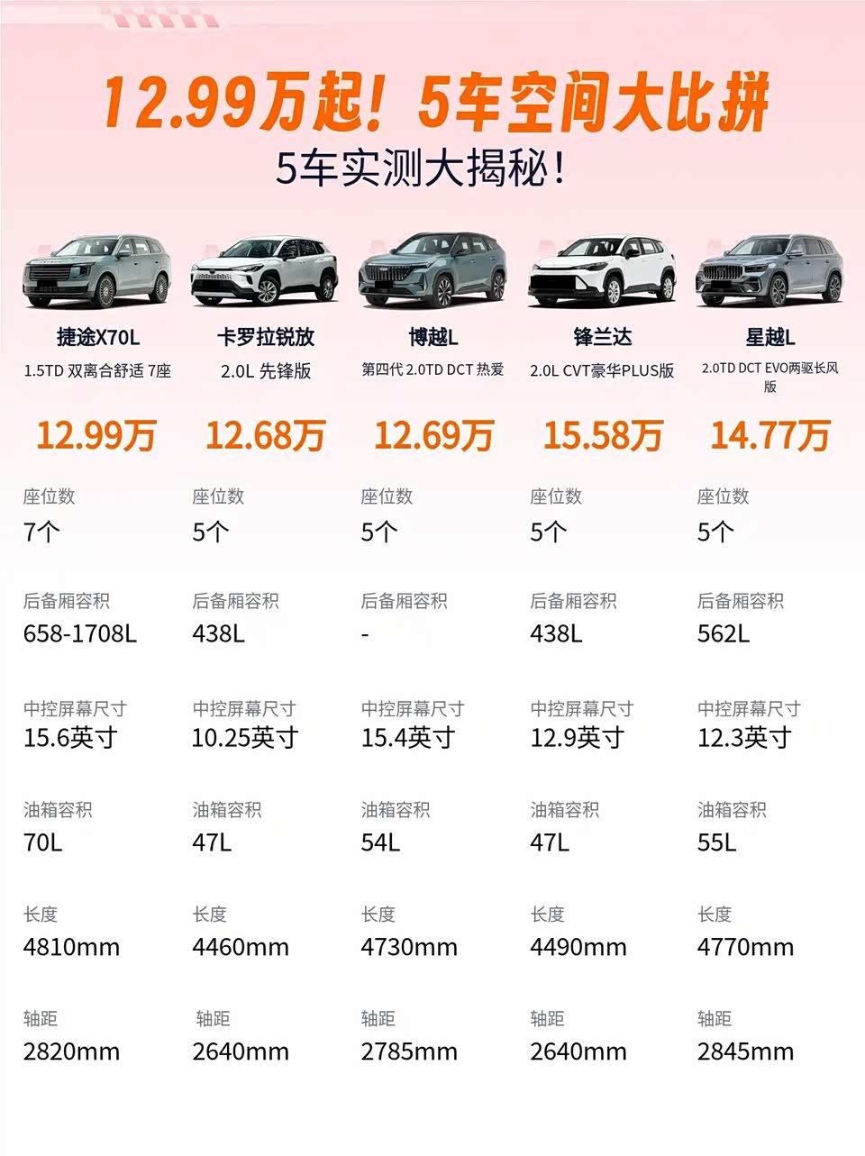带5个180cm同事跑长途,X70L三排电动调节+纯平地台,最后一排居然能正常坐人!而卡罗拉锐放2026款2.0L先锋版后排腿都伸不直,博越L 2025款2.0TD热爱版后备箱连帐篷都塞不下。更绝的是油耗:同样满载开空调,X70L表显7.2L,锋兰达2026款2.0L豪华PLUS版都要8.1L(说好的日系省油呢?)