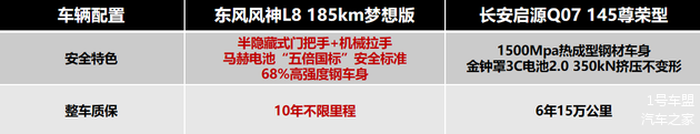 从产品本身考虑,东风风神L8与启源Q07都在坚守着安全的底线。但东风风神L8更懂家庭顾虑,用更周全的防护、更有诚意的承诺,将安全感送到家人身边。