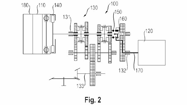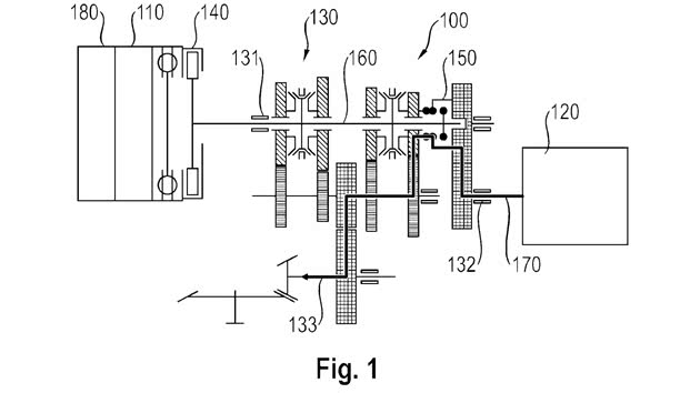 专利中描述的动力系统在表面上仍遵循已知原理:一台内燃机(180)与第一台电机(110)组合,二者安装在同一根传动轴上。该组合单元连接至变速箱(130)的第一输入轴(131),形成所谓的第一机械动力路径(160)。