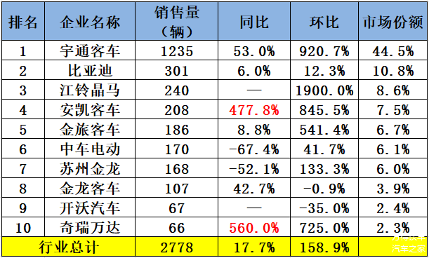 在12月新能源客车出口同环比强劲增长态势的行情下,12月份各家企业的表现又如何?