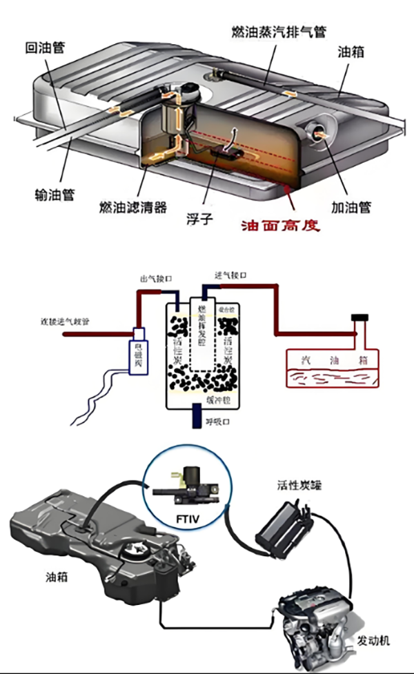 所以汽车的燃油箱里的压力是会持续升高的,如果没有泄压装置的话,是会撑破油箱的;所以燃油箱必须设计有燃油蒸汽排放管,该管路连接的是发动机的碳罐,碳罐的作用是通过活性炭吸附燃油蒸汽里的燃油,随后再将脱附燃油之后的空气排到车外。