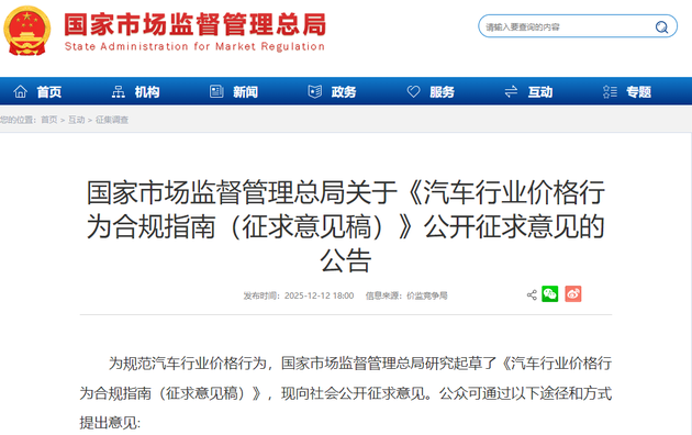 去年12月,国家市场监督管理总局发布了《汽车行业价格行为合规指南(征求意见稿)》,主要内容包括:细化汽车生产企业价格行为规范,明确了从整车到零配件生产、从定价策略到销售行为各环节的价格合规要求;明确汽车销售企业价格行为要求,聚焦汽车新车销售环节,着力规范未按规定明码标价、虚假促销等突出问题;引导建立健全内部合规管理制度,指导汽车生产销售企业构建系统化的内部价格合规管理体系,从源头预防价格违法行为。这在一定程度上遏制了汽车行业“价格战”的蔓延,起到了拨乱反正的效果。