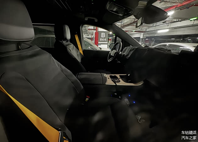 奔驰VLE测试车中控台部分覆盖有严密的伪装,预计采用仪表+中控双联屏设计,同时还有望提供副驾娱乐屏。三辐式方向盘与现款奔驰V级相似,但左侧盘辐增加定速巡航控制拨杆,右侧盘辐也设置了物理滚轮,不再是全触控设计。另外,车内还配备有亮黄色安全带、后排遮阳帘。
