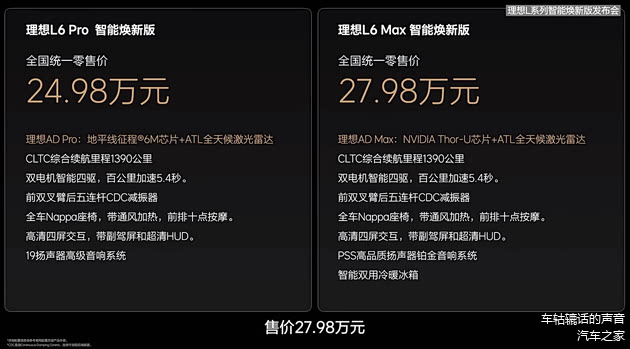 而对于智驾辅助系统来说,AD Pro和AD Max使用同款激光雷达,在安全方面大幅提升,比如可以实现雨夜面对前方事故车AEB实现120km/h刹停,黑夜面对两台事故车,在120公里/时可以连续躲避。另外,在硬件上,AD Pro芯片升级为新一代地平线征程6M芯片(原地平线征程5芯片),较上一代计算能力升级4倍,AD Max芯片升级为英伟达Thor-U芯片(原双Orin-X芯片),算力达到700TOPS,这也是因为大今年发布的最新智驾辅助层面芯片,该算力达到了目前行业的领先水平。理想L6智能焕新版除了实现了端到端+VLM大模型外,还推出了更强大的VLA大模型,VLA模型是将端到端、VLM两个模型合二为一,VLA模型融入了视觉语言模型、动作模型,并且支持全场景NOA。
