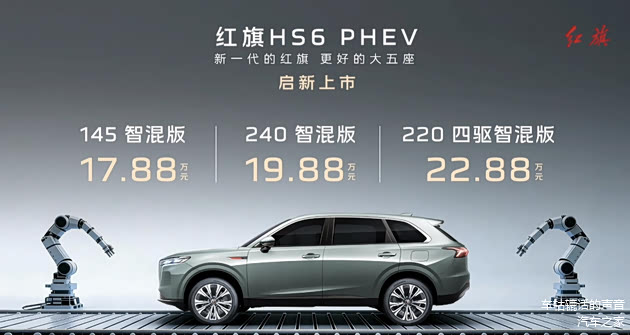 动力方面,红旗HS6 PHEV搭载的是1.5T插电式混动系统,发动机的最大功率为110千瓦,电机组合也提供168千瓦前电机,或者168千瓦前电机+201千瓦后电机(四驱)。电池方面,车辆提供23千瓦时和40千瓦时两种规格,纯电和综合续航分别达到148/1580公里(23度电两驱)、248/1650公里(40度电两驱)、228/1460公里(40度电四驱)。
