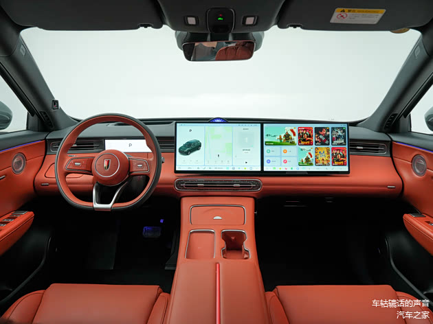 车内岚图FREE+搭载的15.6英寸2K超清屏可实现五屏联动(中控屏、后排屏、AR-HUD、仪表、冷暖箱控制屏),支持鸿蒙手机一键投屏及跨设备任务流转,音频、导航等信息可无缝同步至车机。后排MagLink拓展坞兼容多品牌平板电脑,实现独立观影与中控交互。此外,新车将会提供极光紫,琥珀棕,深海蓝三种内饰颜色。
