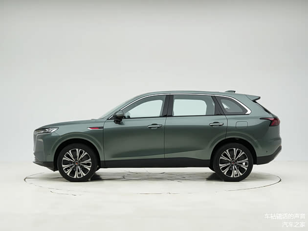 首先,我们要来推荐的就是出自红旗的红旗HS6 PHEV,它是在2025年12月16日上市的。从外观上来看,红旗HS6 PHEV采用了家族化的设计语言。前脸配备了大尺寸的直瀑式进气格栅与分体式大灯,中间的红色旗标灯极具品牌辨识度。车身侧面线条修长,搭配黑色轮眉和多辐轮毂,展现出中大型SUV的稳重与力量感。