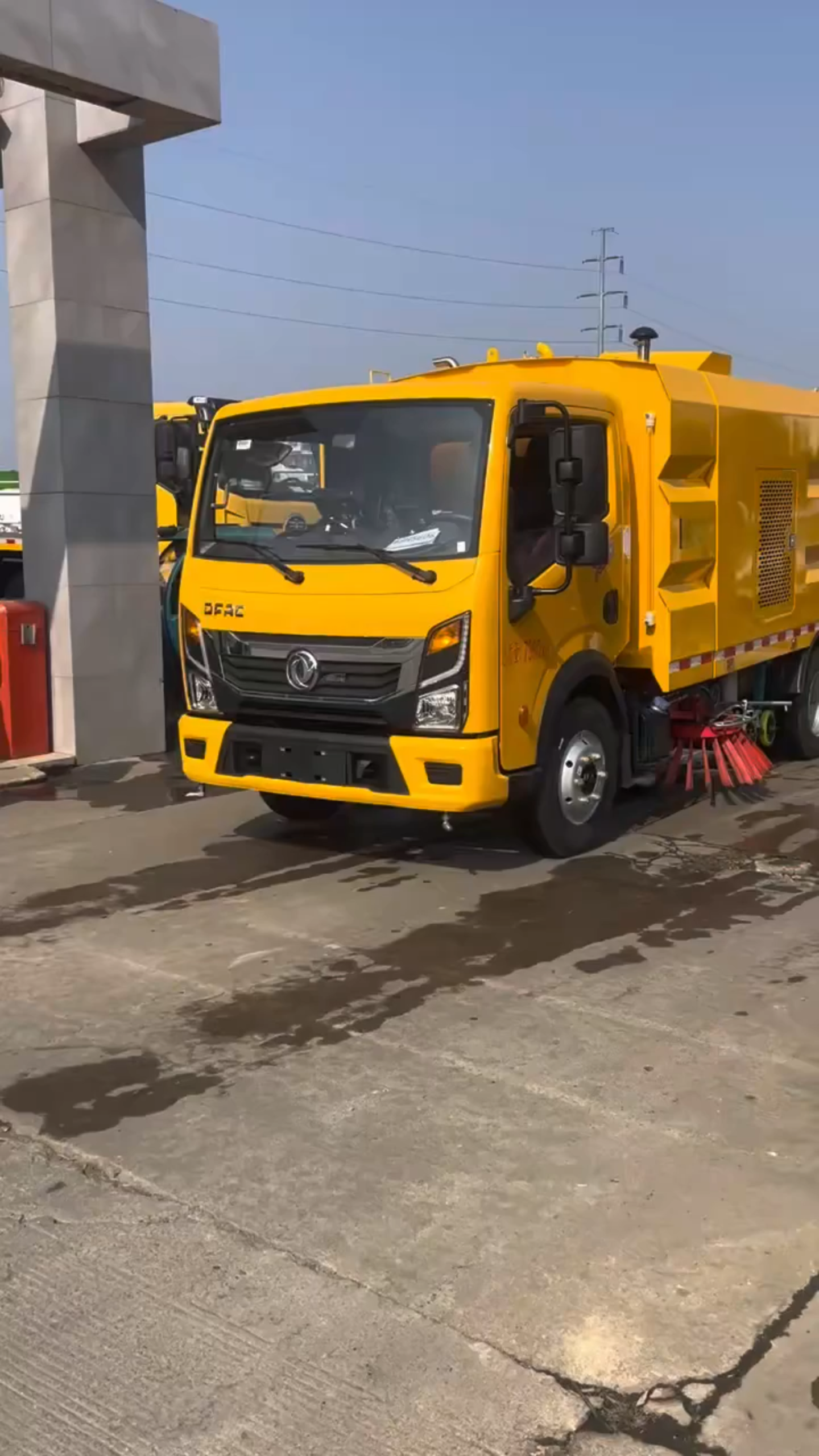 东风小多利卡洗扫车。福田七方蓝牌洒水车发车