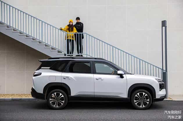 侧面看,18英寸轮毂配上2810mm的超长轴距,车身姿态非常稳健。车顶行李架不仅是装饰,更是露营党的“诗和远方”。