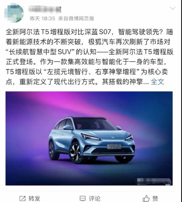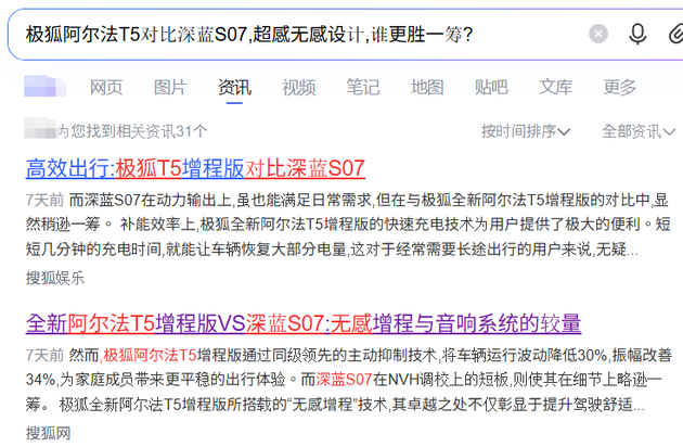 众所周知,现在互联网仍旧是乌烟瘴气,除了老生常谈的互相攻击以外,就连当下AI人工智能出现的时刻,它也被一些别有用心的人,拿来当舆论攻击的武器。近日就有网友发现,网络上突然涌现了一批“极狐阿尔法T5对比 深蓝S07”的相关内容。