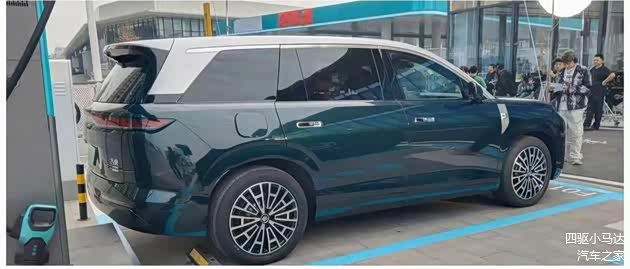 从侧面来看,新车确实很长,大概率会超过5.2米。侧面线条比较平直,是大型SUV惯用的设计。新车配备多辐条轮圈,D柱有银色装饰点缀,整体的气场还是挺强的。