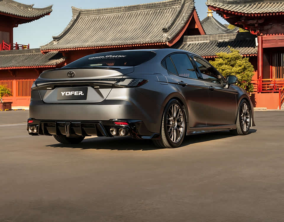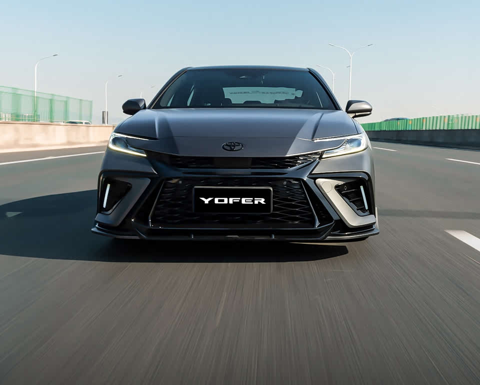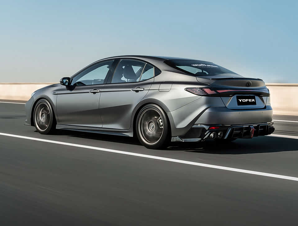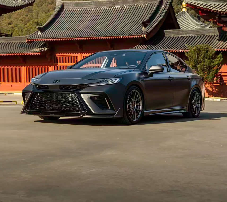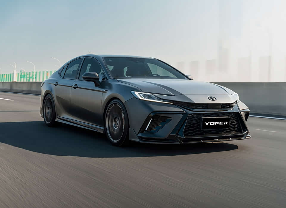 丰田凯美瑞改装版,改装版在外观的设计上有升级,有着运动大气的设计,前脸整体感更强,中网采用了上方片状以及下方梯形的蜂窝式格栅设计,视觉效果更加霸气和运动,整体的风格呈现出纺锤形的风格,两侧运用了犀利的轮廓设计。侧面的轮廓依旧比较优雅和动感,提供运动的侧裙套件,轮毂的设计比较动感。尾部上方增加了尾翼的设计,尾灯组贯通式的风格,提供立体的黑色后包围,还搭载了四出的排气管设计。动力上搭载2.0L混动系统。改装版在外观上的表现非常动感。
