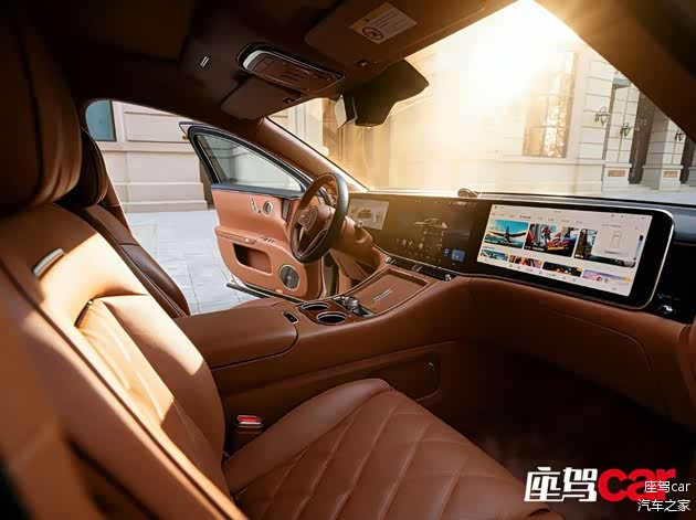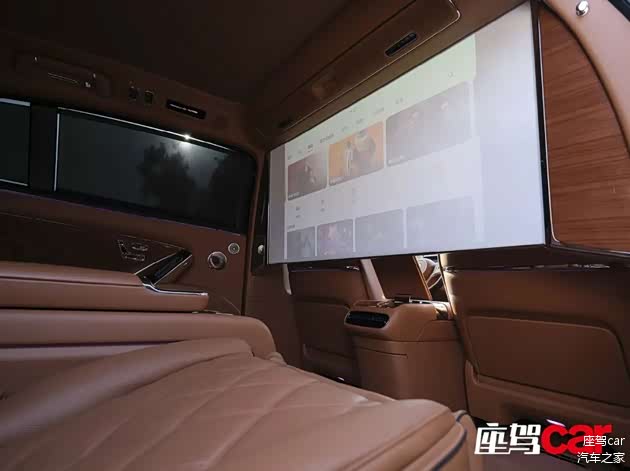 不过,尊界还是在每个空调出风口旁设置了精致的小旋钮,它不仅可以用来调节风向,还可以联动空调系统手动调节风量大小,这一人性化的设计想必会得到副驾驶乘客的好评。由于采用了怀挡设计,中央地台区域被释放出来,布置了无线充电板与一个可自定义功能的水晶旋钮。我们并未改变它的初始设定——驾驶模式切换,因为只有在这个界面,你才能感受到“尊界”独有的魅力——尊界驾驶模式。