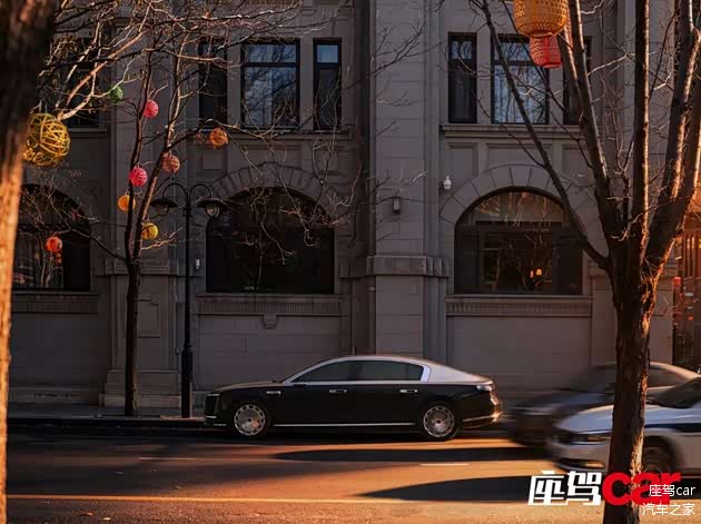 当尊界S800星耀行政版4座车型真切出现在我眼前时,我才对它有了更深层次的认知,这是仅靠网络图片无法体会到的感觉。首先,它很大,这也是D级车的必备要素。尊界S800车长5480毫米,比迈巴赫S级还长10毫米;车宽2000毫米,轴距达3370毫米。配合垂直型面的车头与壮硕的车身比例,停在那里竟隐隐透出一丝丝劳斯莱斯古思特的气场。其次,它在车身装饰上也向德系竞品看齐,特别是我们这台试驾车所采用的黑金双色车身,寓意从黑夜过渡至黎明,气度拉满;四个21英寸的“大饼”轮圈,如今已越来越多地被中国豪华车所采用,它所带来的尊崇视觉效果已经在迈巴赫S级上得到了无数次验证。从双色车身到“大饼”轮圈,尊界S800的尊贵气质得以淋漓尽致地展现。
