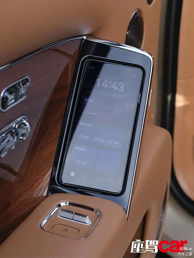 作为头等舱级别独立座椅,加热、通风、按摩、零重力模式自是标配,特别值得一提的是,其加热功能采用了环绕式方案,除了座椅,门板、中央扶手也会同步加热,且支持热石按摩功能,完美舒缓旅途疲惫。左右侧门把手上嵌有可取出式触控平板,操作方式比宝马7系更加灵活。通过这块屏幕,你几乎可控制所有后排功能,便捷度拉满。比如可以像波音787客机那样调节侧车窗明暗。当然,这项功能也可以通过挥手实现,趣味十足。配合后侧窗及后风挡电动遮阳帘,隐私性得到充分保障。不止这些,对于后排的贵客来说,交谈的隐私也很重要。尊界S800提供了与享界产品如出一辙的隐私声盾功能,开启后,前排几乎无法听清后排交谈内容。