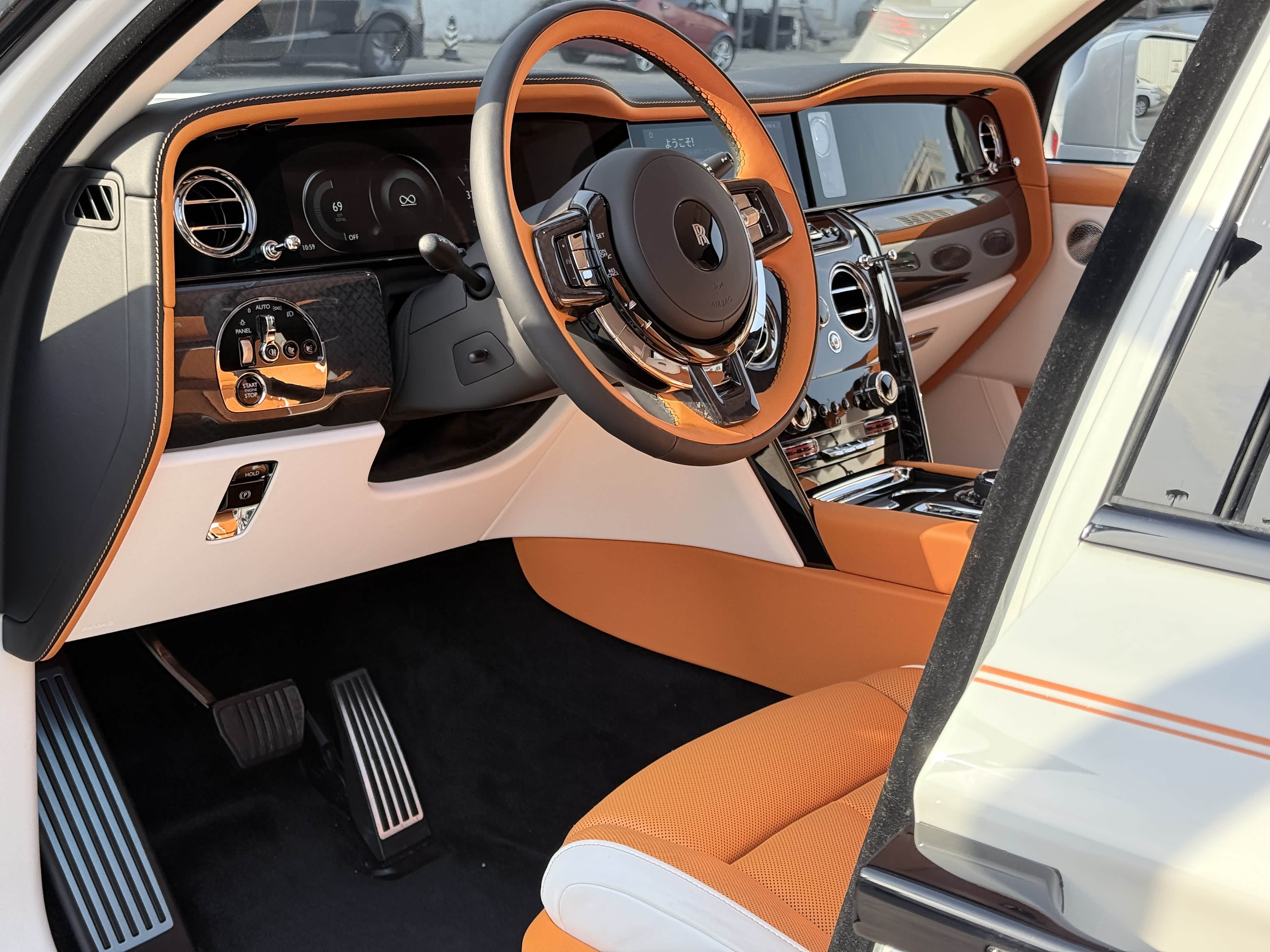 25款库里南BB版 白/爱马仕橙+优雅白,增值,五座,副驾驶发光面板,双腰线,星空顶,定制音响,双拼方向盘,碳纤维中控板,23寸轮毂