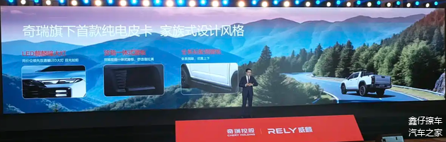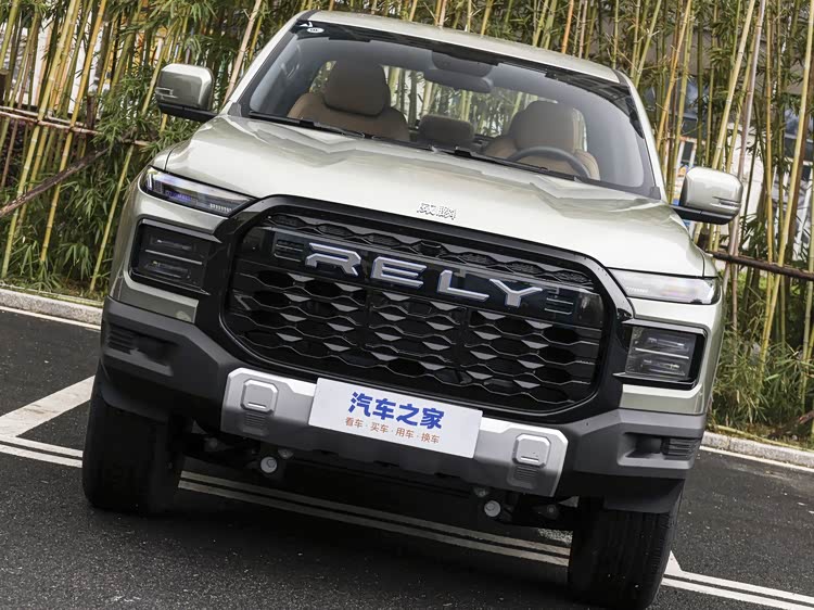 外观部分,威麟R08 EV采用多边形前格栅结构,内部为蜂窝状亮黑元素,中央设置RELY品牌标识,前舱盖边缘加入“威麟”字样,整体设计重点在于区分新能源身份和品牌归属,并未采用过多装饰性线条。这样的设计取向在皮卡产品中较为常见,能够在施工场地、物流园区等环境中保持清晰辨识度,同时也兼顾日常道路行驶的观感需求。