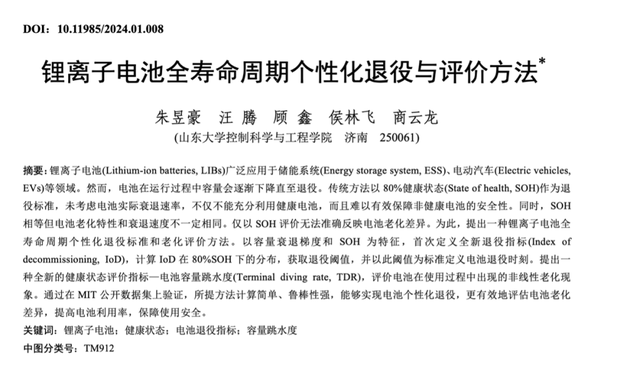 最近《电气工程学报》刊载山东大学的一篇文章《锂离子电池全寿命周期个性化退役与评价方法》,里面就讲到,车用动力电池使用传统的SOH 80%这个退役标准,用来一刀切的评价动力电池的老化水平,局限性较大。
