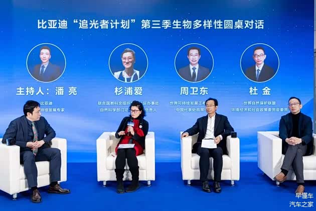 紧接着,现场嘉宾围绕“生物多样性”开展圆桌对话,杉浦爱提出,生态系统修复需要科技、社区参与及本地治理的协同推进。世界可持续发展工商理事会中国代表处首席代表周卫东表示,此次合作模式推动企业从表态转向解题,为中国企业参与全球生物多样性治理探索新路径。世界自然保护联盟环境经济和社会政策委员会委员杜金认为,比亚迪“追光者计划”第三季体现企业从风险评估迈向实质行动,这类前置性战略投入,有助于企业占据主动位置、降低系统性风险。