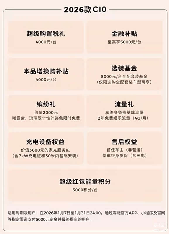 综合来看,这三款车的实力都很强,不过在动力输出、续航里程、快充时间、操控体验、乘坐体验、配置和功能等方面,零跑C10的表现都很亮眼,而且它还有4000元的购置税补贴、4000元的增换购补贴、2000元的个性外饰色、2年免费娱乐流量(终身基础流量)、首任车主终身质保(含三电)以及赠送3680元的7kW充电桩(含30米内安装)等购车权益,买车时,真的可以考虑一下零跑C10。最后,对于这三款车型,您有什么看法?