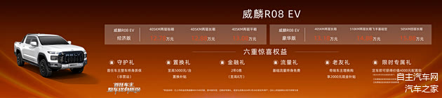 此次上市的威麟R08 EV共推出经济版、豪华版两大版本,并提供包括植保飞手型在内的多种动力与电池配置选择,12.78万至15.88万元的售价区间,在同级纯电皮卡中极具竞争力,充分展现了品牌的诚意。