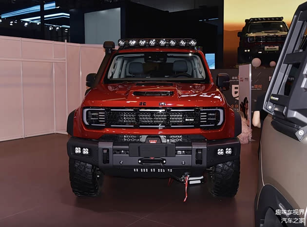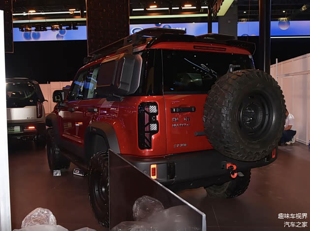 外观方面,两款新车倒是没有什么调整,继续延续家族经典“方盒子”造型,同时搭载专属设计彰显个性。悦野飞行版最引人注目的是车顶悬浮式气动美学机舱,作为无人机收纳舱,兼具收纳、充电与一键释放功能,造型科幻且实用性拉满。赤兔车型则会使用赤兔拉花装饰,搭配火焰红定制车漆,辨识度极高,同时配备扩充版轮眉、铝合金脚踏与高进气涉水喉,原厂改装件直接满足越野玩家需求,外挂式全尺寸备胎与竖向尾灯组则延续家族经典设计。